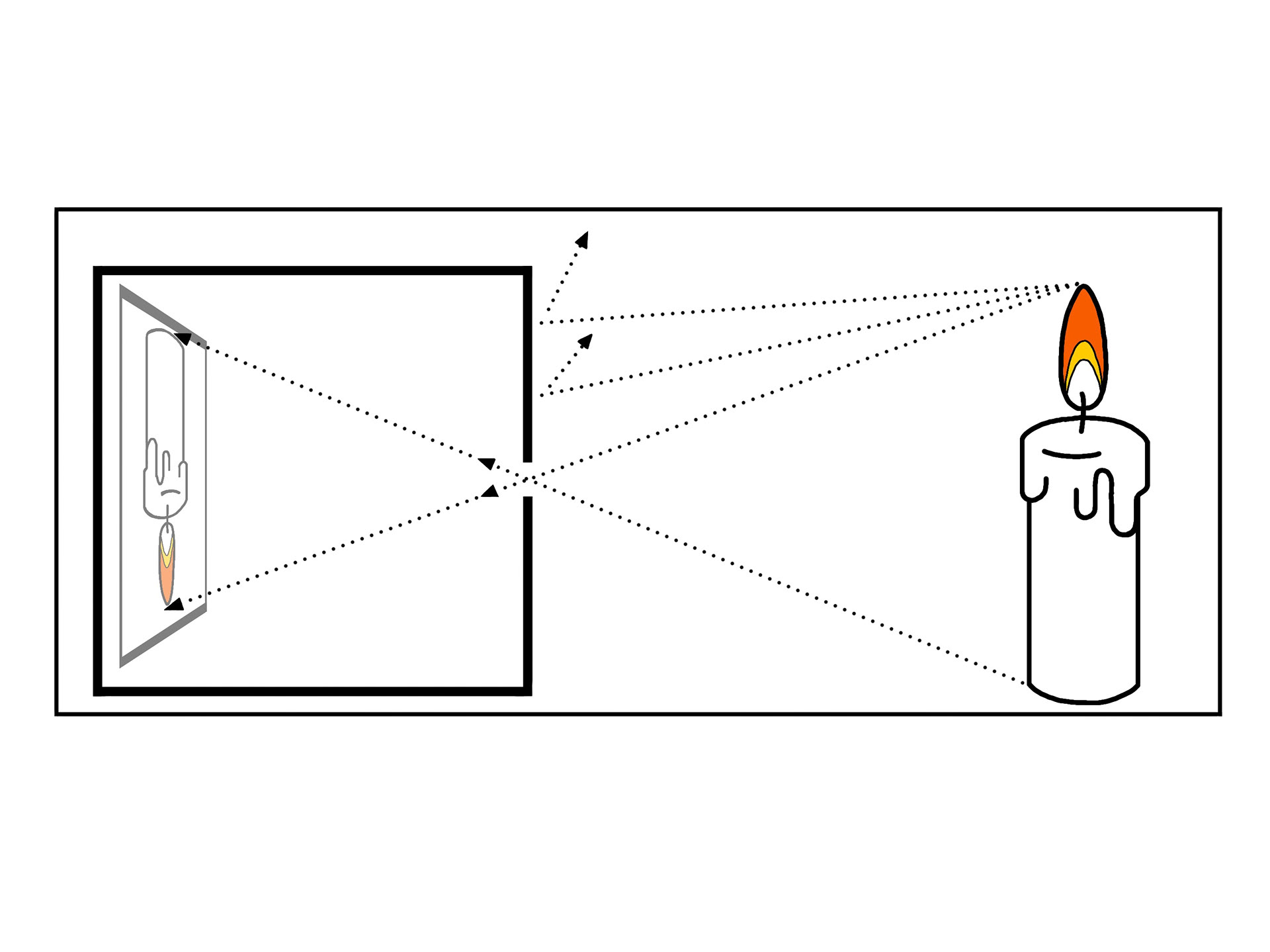 その内、針穴を通った光だけが、穴の開いた壁と反対の壁を照らします。